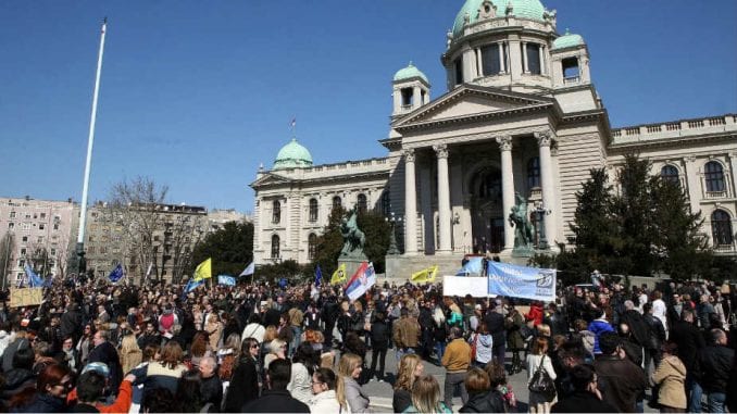 Forum Beogradskih gimnazija, inače član jednog od reprezentativnih sindikata obrazovanja – Sindikata radnika u prosveti Srbije, pozvao je juče sve zaposlene u prosveti da dođu na današnji protest. „Odluka nadležnih ministarstva da prosvetne radnike svrsta u osmu platnu grupu predstavlja poslednji ekser zakucan u sanduk srpske prosvete. Ukoliko prosvetni radnici u ovom trenutku ništa ne urade kako bi sprečili sprovođenje navedene ideje u delo, veliko je pitanje ko će u budućnosti obrazovati srpsku omladinu“, navodi se u saopštenju FBG.