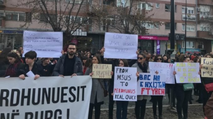 Foto: RTK 2Građani Prištine danas su protestovali ispred Policijske stanice u znak podrške maloletnici iz Glogovca, koju je, kako je saopšteno, seksualno zlostavljao njen učitelj, a zatim i policajac koji je istraživao slučaj.