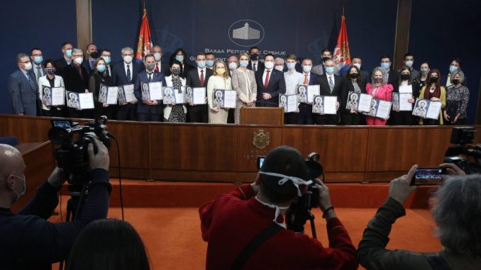 Foto:BETAPHOTO/MILAN OBRADOVIC/DSMinistar prosvete, nauke i tehnološkog razvoja Branko Ružić izjavio je danas na dodeli Svetosavskih nagada u Vladi da su dobitnici ovogodišnjeg priznanja dokaz da „Sveti Sava živi i bitiše u svima nama“.