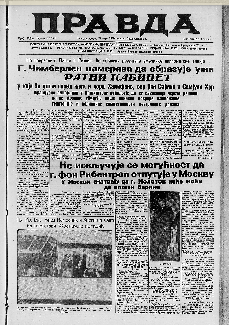 mi sugrađani, razmišljali u Srbiji u turbulentnom periodu između dva rata i pred sam početak Drugog svetskog rata. Pored političkih vesti, objavljivaćemo i društvene, ekonomske, ali i vesti iz domena zabave i sporta.Projekat je realizovan u saradnji i uz materijal iz digitalne arhive Narodne biblioteke Srbije i Univerzitetske biblioteke „Svetozar Marković“.