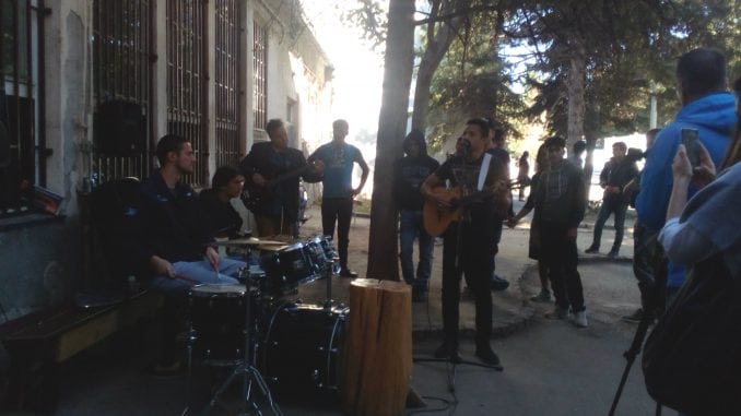 Foto: U. M.Pakistanac, Avganistanac, Kubanac i Srbin koji sviraju u Social Cafe bendu juče su nastupili u dvorištu Prihvatnog centra u Obrenovcu kako bi ugostili delegaciju, i zabavili stanare centra sa kojima dele prostor.