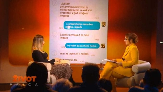 Tema njene emisije na TV Prvoj u sredu uveče bila je seksualno uznemiravanje koje je Marije Lukić iz Brusa godinama trpela od predsednika te opštine Milutina Jeličića Jutke. Međutim, građani Brusa nisu mogli da je gledaju jer je TV signal nestao neposredno pred emisiju.