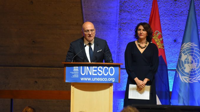 Ministar Vladan Vukosavljević, održao je večeras govor pred predavanje Emira Kusturice „Kultura i raznolikost“ u Parizu, u sedištu Organizacije Ujedinjenih nacija za obrazovanje, nauku i kulturu (UNESKO).