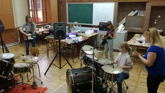 Devojčice uzrasta od 10 do 14 godina iz cele Srbije koje vole rok i žele da sviraju u sopstvenom bendu nedelju dana su vežbale gitaru, bas gitaru, klavijature i bubnjeve.