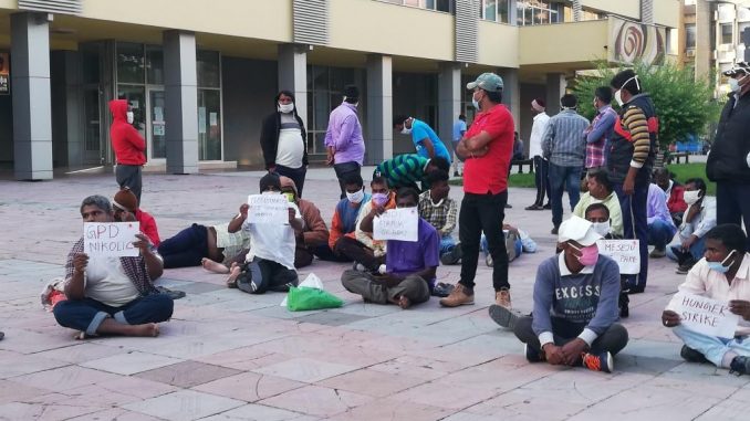 Foto: Z. NikolićGrupa od četrdesetak radnika iz Indije nastavila je, i u večernjim satima, svoj protest organizovanim štrajkom glađu na Trgu Jovana Sarića ispred zgrade Skupštine grada Kraljeva.