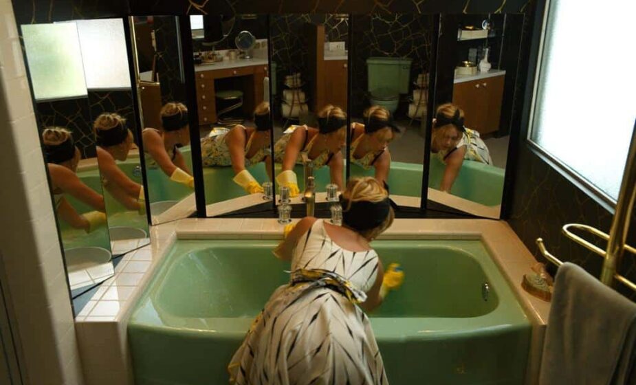 Ukoliko bismo odabrali da pratimo današnje isključive stavove vezane za pedesete godine prošlog veka, a svakako pravac razmišljanja na koji nas navodi film „Plavuša“, mlada žena je tada imala pred sobom binarni izbor. Mogla je da pokuša da ostvari karijeru u oblastima umetnosti, nauke, politike – dakle, nečega što zahteva prodornost i pobeđivanje konkurencije – i na tom putu bi je čekali etički kompromisi i prodaja tela muškarcima instrumentalnim za stupanje na sledeći stepenik karijernog uspona. Ili je mogla da bude podatna supruga, doterana i našminkana dok u trenutku povratka muža sa posla prenosi do trpezarijskog stola ručak koji se puši (dečica za to vreme leže na podu i gutaju đubre koje im pristiže iz katodne cevi). Alis Čejmbers (Florens Pju) spada u ove druge, mada bez dece, na čije pominjanje misteriozno u jednom trenutku izjavljuje da još uvek želi da se zabavlja.