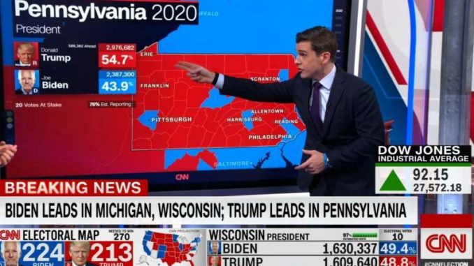 Moje praćenje – ako izuzmemo internet – američkih predsedničkih izbora moralo je biti ograničeno na CNN, pošto u osnovnoj kablovskoj ponudi nema drugih prekookeanskih televizijskih kanala. Nekoliko dana televizor je isključivo krasila dvobojna mapa i puzajuće prelaženje država iz crvene u plavu boju.