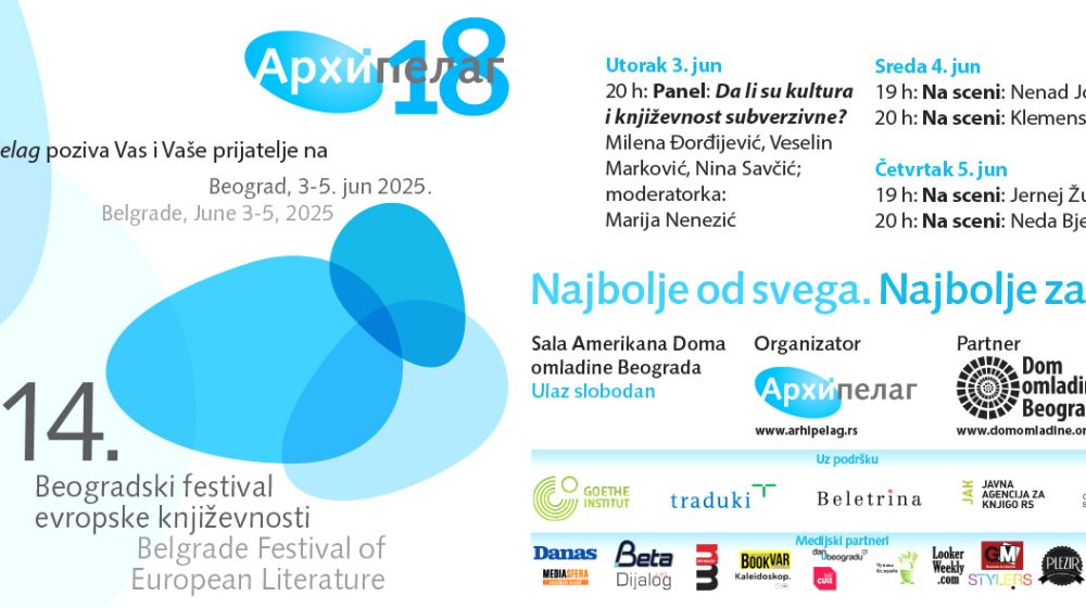 Foto: PromoIzdavačka kuća Arhipelag organizuje 14. Beogradski festival evropske književnosti koji se od 3. do 5. juna održava u Domu omladine Beograda.