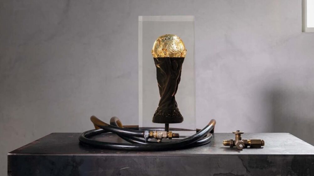 „Šefovi FIFA znali su za ljudska prava radnika u Kataru, njima je novac od nafte važniji od krvi“, zaključuje umetnik čija se replika trofeja, koja je proizvedena sa španskom fudbalskom publikacijom Libero, prodaje preko umetničke organizacije sa sedištem u Londonu „a/political“, a trebala bi da bude izložena u njihovom prostoru u Kenningtonu 18. novembra na dan kada se održava finale prvenstva u Kataru.