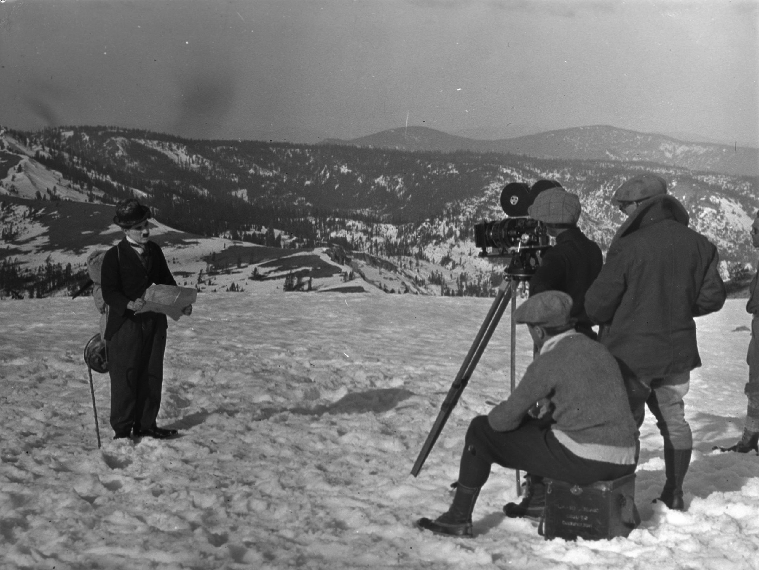 Za uvod u film, sniman u snežnom kraju Siere Nevade, Čaplin je ponovo stvorio istorijsku sliku kopača koji se bore da se popnu na Čilkot.