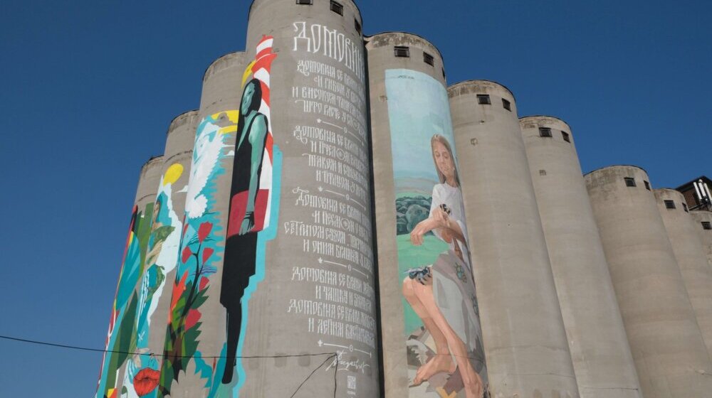 Foto: Nemanja KneževićBeogradske Silose krasi novi mural velikog formata, visok čak 28 metara na temu stihova pesme Ljubivoja Ršumovića „Domovina se brani lepotom“.