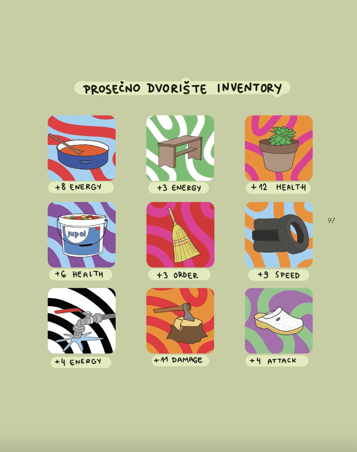 Za mene je inicijalna iskrica gotovo uvek verbalna: najčešće je to neki uvid o svetu koji nas okružuje stavljen u smešan ili neočekivan kontekst. Dobar primer je sadmics o tome koliko novih kružnih tokova je niklo u Beogradu, smešten u kontekst filma “Nebo nad Berlinom”. Druga stvar koju rado koristim kada stvaram je sistematizacija. Tako sam sistematizovala šta se sve može naći u prosečnom srpskom dvorištu, a celo jedno poglavlje u knjizi (Totemi domaćinstva) proširuje ovu temu i na taj način stvara prostor za sve one stvari koje su previše ružne da bi se uklopile u glamurozne estetike koje dominiraju internetom: poput praška, dvorišne klompe i dugih gaća!