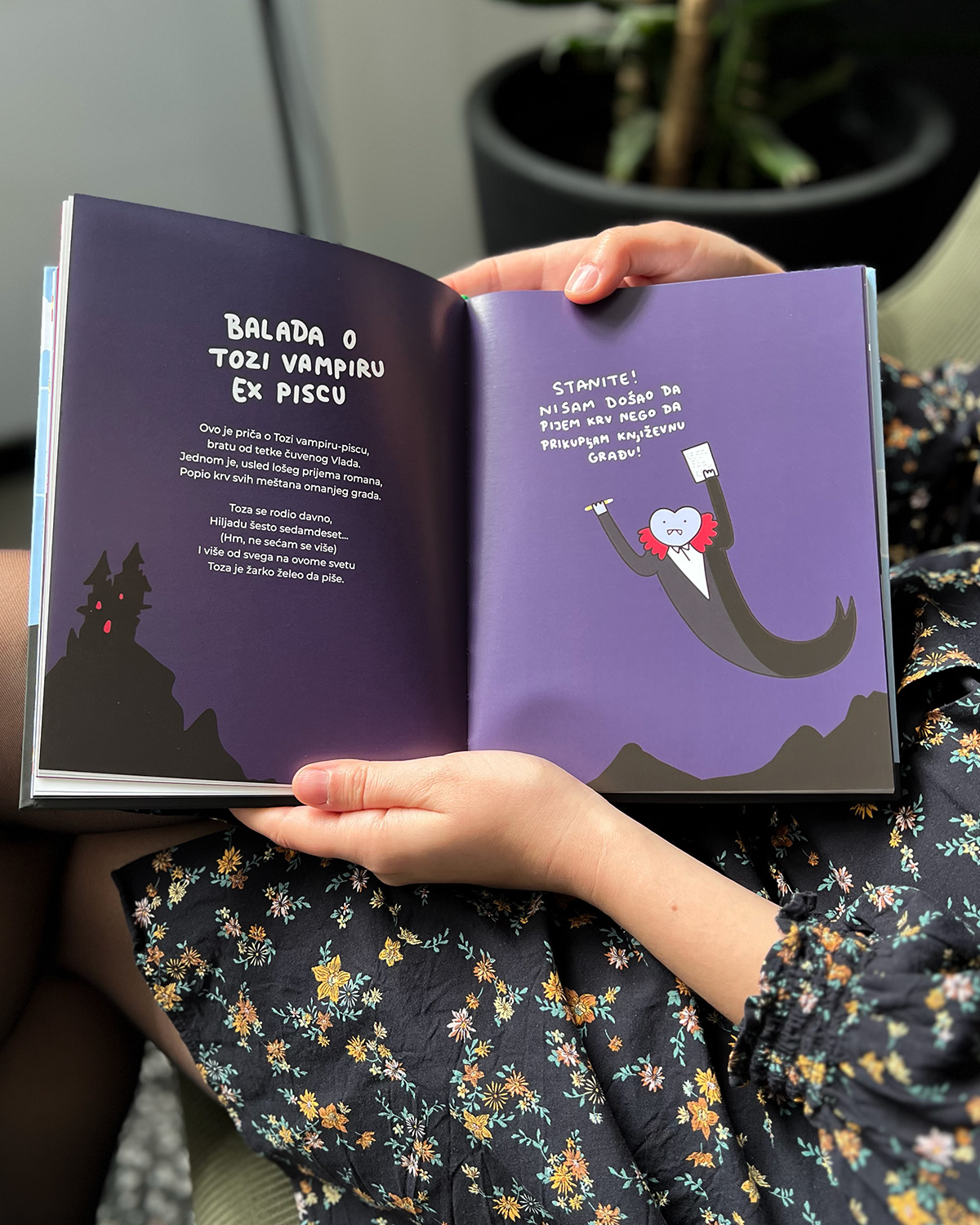 Volela bih da istražim dalje univerzum Toze vampira ex pisca, mog omiljenog lika, tragikomičnog stvorenja koje pati od stogodišnje kreativne blokade, a neoprezne putnike tera da slušaju njegove rukopise i daju mu fidbek. O formatu, uglavnom, razmišljam naknadno – kada se ideja oformi, uglavnom postane jasno i da li je to izložba, knjiga ili nešto treće. Ipak, pre nego što krenem dalje, pozivam čitaoce da posete promocije Sadmics knjige u Novom Sadu (19. jun) i u Kraljevu (1.jul), u sklopu pozorišnog festivala Anfiteatar!