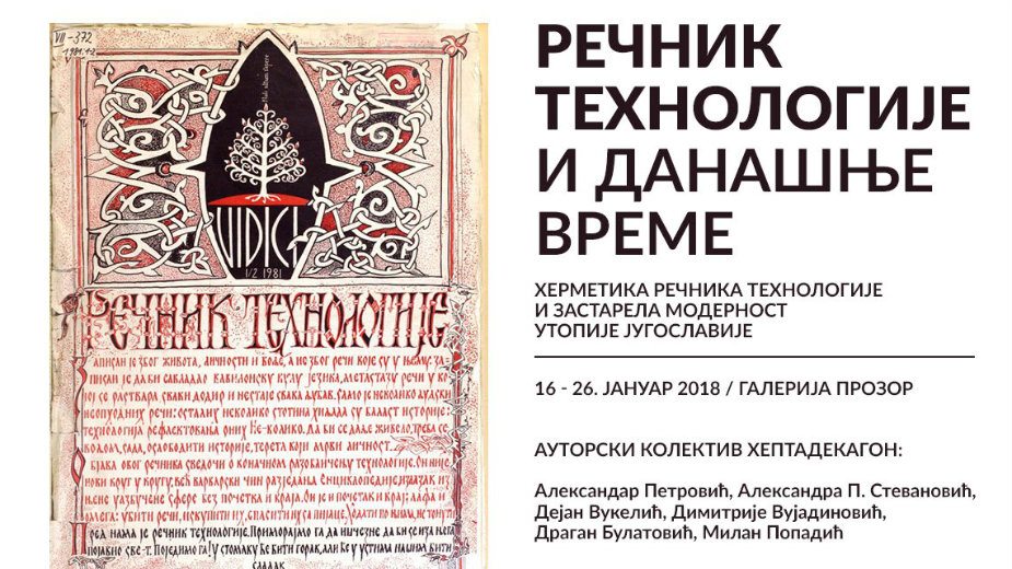 Izložba „Hermetika Rečnika tehnologije i zastarela modernost utopije Jugoslavije“ biće otvorena u utorak u 18 časova u galeriji PROZOR (Ulica Koče Popovića 9) i trajaće do 26. januara.