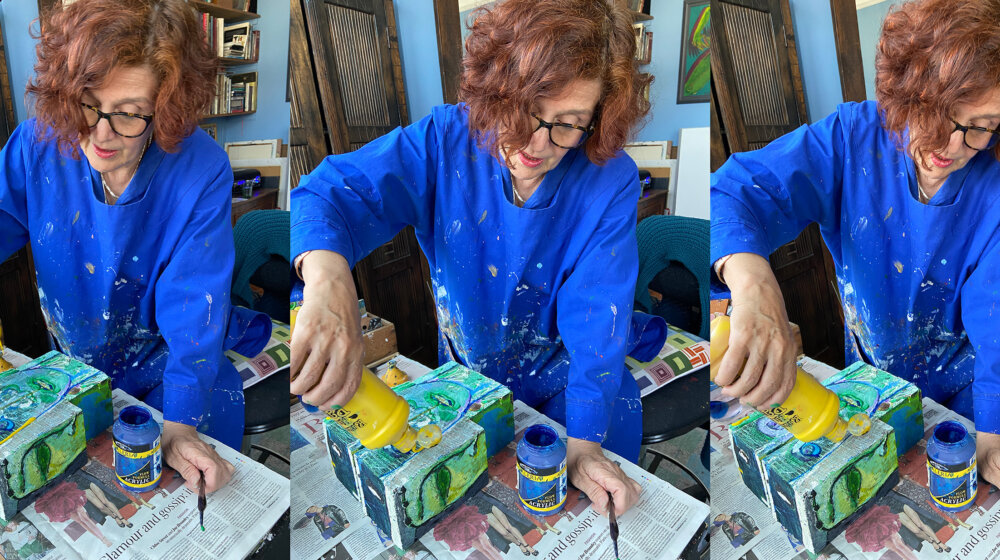 – Donedavno sam samo slikala na prednjoj strani, ali onda sam došla na ideju da se drvetu/skulpturi može pristupiti sa svih strana. Na taj način oslikani likovi imaju drugo, treće i četvrto lice, a svaki komad se može podeliti i na pojedinačne blokove – navodi umetnica.