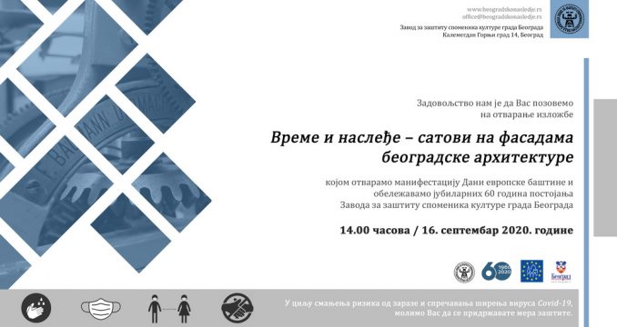 Foto: PromoIzložbom „Vreme i nasleđe – satovi na fasadama beogradske arhitekture“ Zavod za zaštitu spomenika kulture grada Beograda u sredu, 16. septembra, otvara ovogodišnju manifestaciju Dani evropske baštine i obeležava jubilarnih 60 godina od svog osnivanja.
