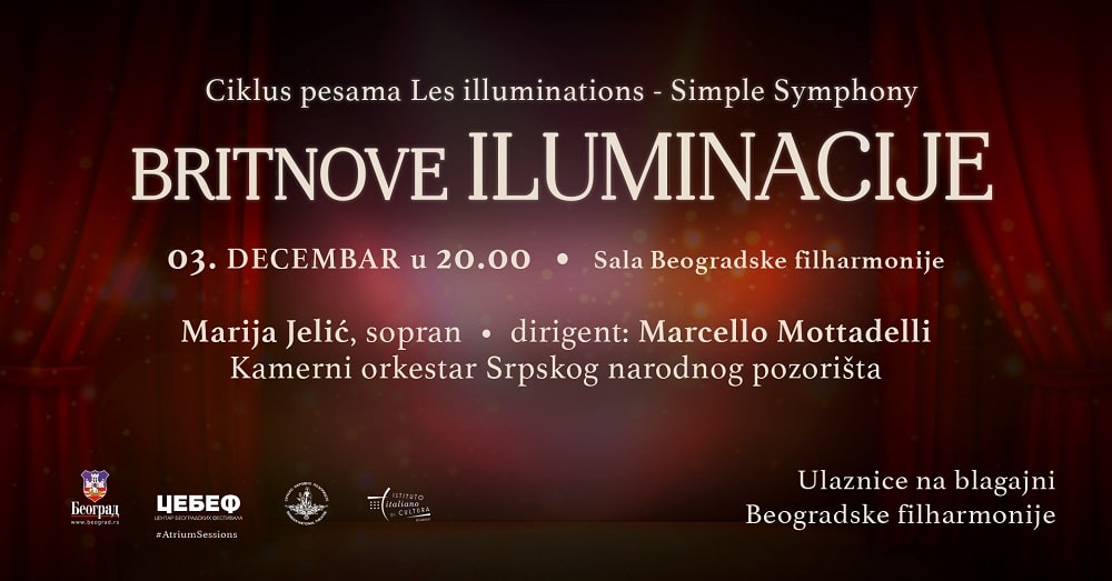 Foto: CEBEF/SNPPrvi put u Srbiji publika će imati mogućnost da čuje ciklus pesama Bendžamina Britna Les illuminations – Britnove Iluminacije uz kamerni orkestar Srpskog narodnog pozorišta i soprana Mariju Jelić, 3. decembra od 20.00 u Sali Beogradske filharmonije.