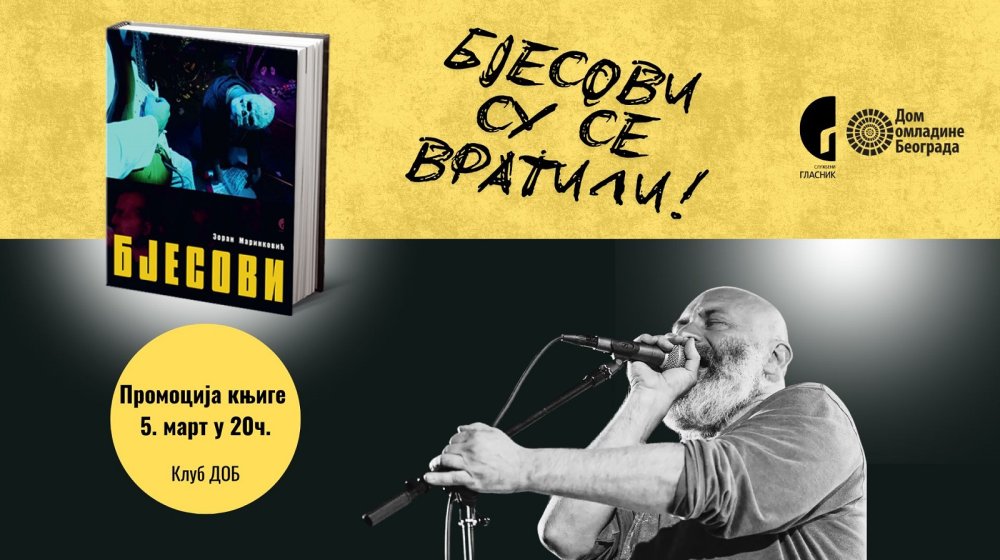 Foto: PromoU sredu, 5. marta u 20h u Klubu Doma omladine Beograda održaće se promocija knjige Bjesovi Zorana Marinkovića.