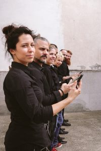 To je veoma zanimljiva priča. Početkom ove godine bila sam izabrana da zajedno sa još 20 internacionalnih umetnika, različitih pozadina i profesionalnih orijentacija učestvujem u MusicMakers Hacklab-u, koji je vodio Piter Kirn, i pripremimo performanse za završno veče čuvenog festivala CTM u Berlinu. Odmah tokom upoznavanja i predstavljanja, rekla sam da već dve godine radim sa telefonima u muzičkom izvođenju i da želim da napravim performans u kome učestvuje publika tako što svira svojim telefonima. Malo kasnije, prišao mi je Hasan Mašni, inženjer i programer iz Palestine sa rezidencijom u Štutgartu i želeo je više da čuje o mojoj ideji, pa smo počeli da razmišljamo o mogućim tehničkim rešenjima: kako bi izgledala aplikacija za publiku, kako bi zvučala, koje bih zvukove ja koristila za nju, kako bi klikovi komunicirali sa serverom i posle bili oblikovani u neku veću interakciju sa nama, izvođačima na sceni. Zatim nam se Huan Olaja iz Kolumbije pridružio sa tačnom idejom kako da kodira tu web aplikaciju i dodatne žive vizuale tokom kompozicije. Tomi Herseta iz Indonezije je doneo sjajnu mogućnost spacijalizacije zvukova koje publika proizvodi u sali, a Justina Stasiovska iz Poljske je napravila sjajne snimke zvukova metroa u Berlinu, koji su nam služili kao zvučna podloga za sve ove ostale elemente u kompoziciji.