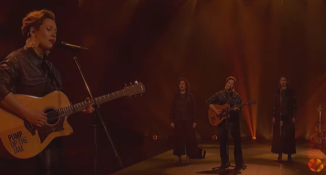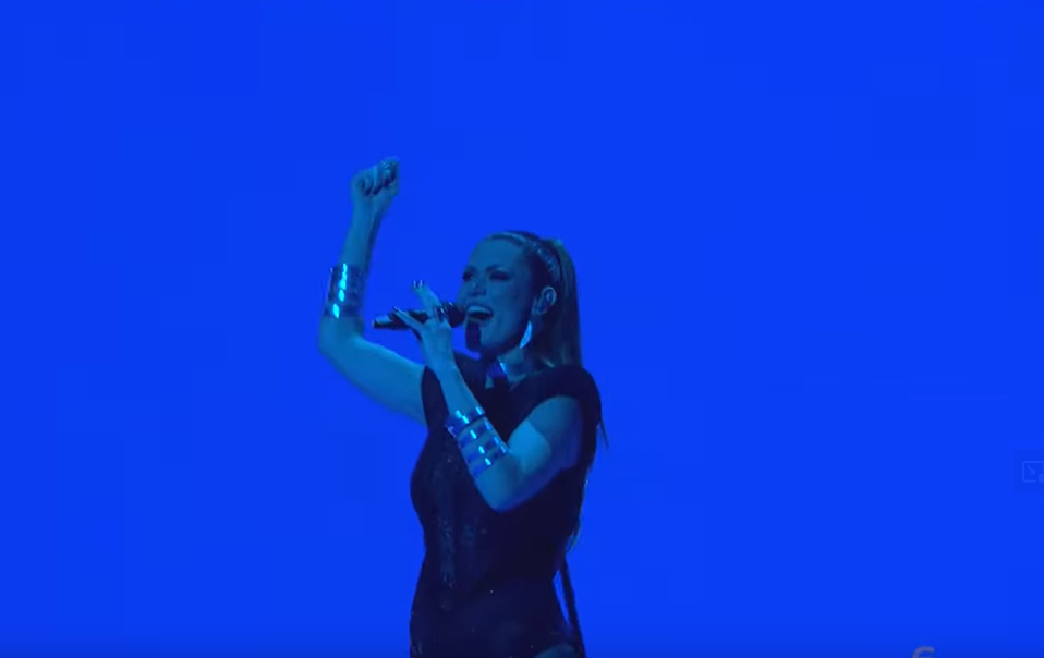 Na kraju izvođenja pesme, Ana je podigla crveni dlan, takođe, na gitari joj je pisalo „pump up the jam“,