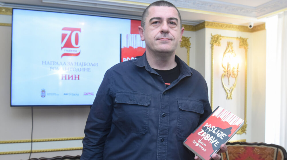 Foto: Zorana Mandic/ATAImagesŽelio bih da se zahvalim žiriju na ukazanom povjerenju, čast mi je što su to povjerenje ukazali meni i još uvijek ne mogu da skupim sasvim sve svoje utiske jer, iskreno, nisam mogao da imam ikakva očekivanja i nikakva preterana nadanja – rekao je Stevo Grabovac, dobitnik 70. jubilarne NIN- ove nagrade za roman „Poslije zabave“ (Imprimatur), danas nešto malo posle podneva u Hotelu Moskva gde je održana konferencija za novinare povodom proglašenja ovogodišnjeg laureata ovog književnog priznanja.