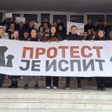 Radnike u kulturi podržali su studenti Fakulteta dramskih umetnosti, a okupljeni su izneli transparente na kojima piše „Sva vlast plenumima“. Biće govora, a najavljen je i plenum.