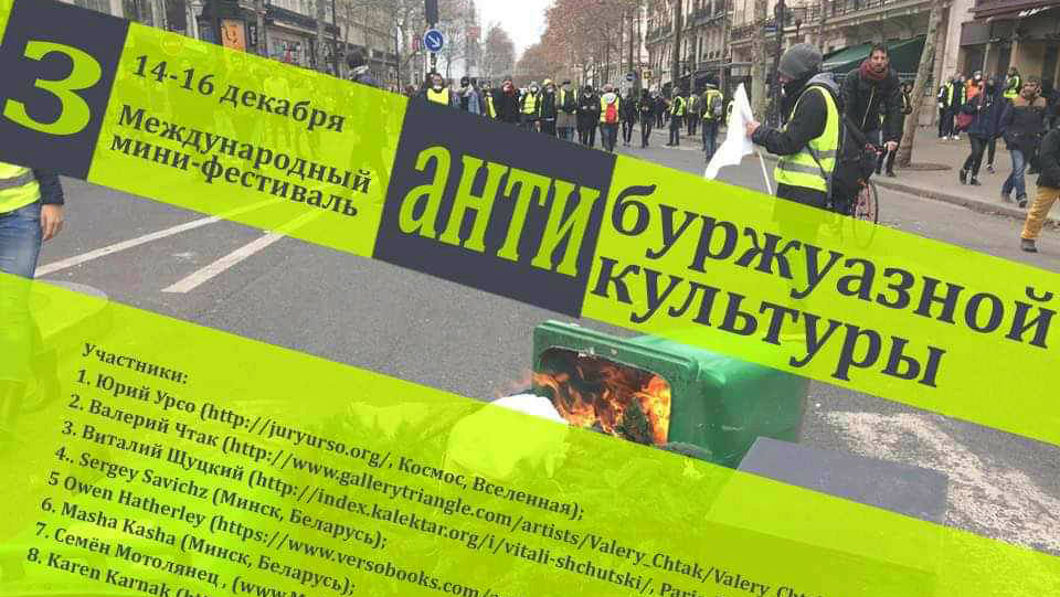 – Antiburžoaski festival uključuje prezentacije umetnika, teoretičara, filozofa, izlaganje umetničkih dela, projekcije filmova… Osmislio sam ideju 2016. godine, pošto sam se vratio u Belorusiju. Imao sam konflikt sa autoritetima još sa 17 godina, a u tom slučaju mnogi ljudi se više ne vrate. Ja sam se vratio 2015. godine, posle boravka u Americi, i otkrio mnogo novih stvari. Odlučio sam da organizujem festival kako bih sabrao sve aktivnosti, jer sam shvatio globalne probleme, ali se nisam pozabavio sopstvenom zemljom.