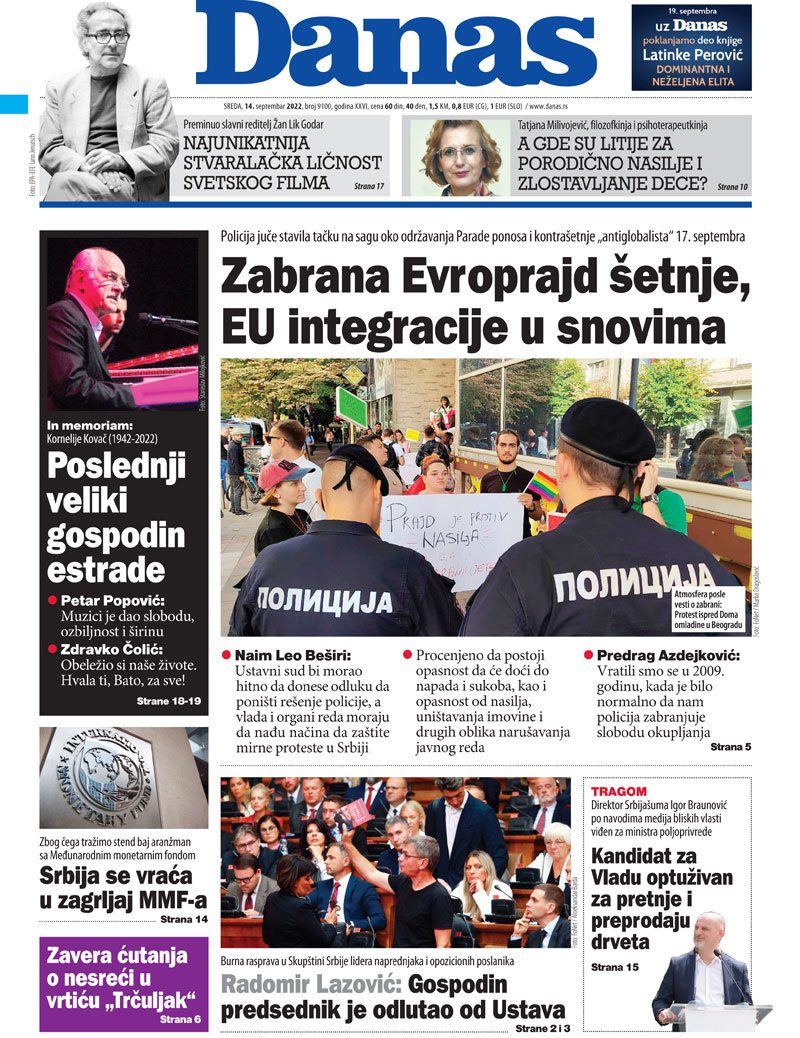 Naslovna za 14. septembar 2022.