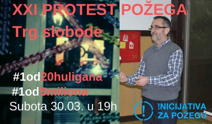 Građani Požege okupiće se, 21. put od februara prošle godine, na protestu koji će se održati u subotu, 30. marta u 19 časova, na Trgu slobode.