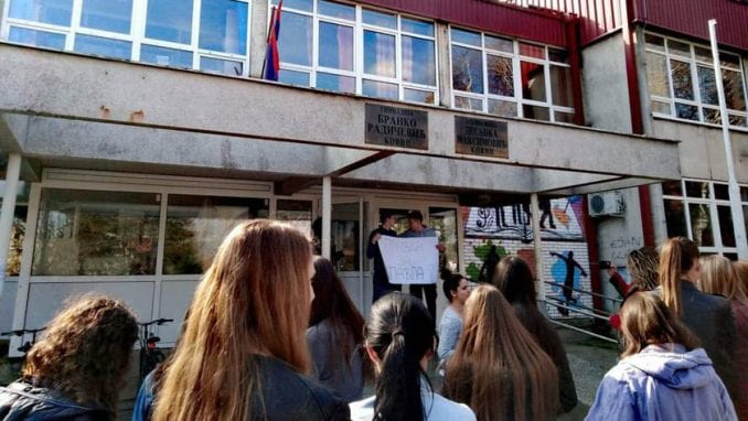 Učenici Gimnazije i ekonomske škole „Branko Radičević“ u Kovinu danas su za jedan školski čas odustali od odlaska na nastavu, u znak solidarnosti sa njihovim kolegom, učenikom beogradske Filološke gimnazije, osamnaestogodišnjim Pavlom Cvejićem, koji je uhapšen i osuđen na zatvorsku kaznu od 30 dana nakon poznatih događaja u RTS-u.