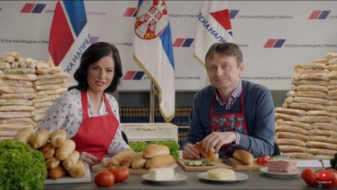 Foto: Printsrceen/ YoutubeSrpska napredna stranka objavila je spot u kojoj funkcioneri te stranke prave sendviče za svoje pristalice koje će 19. aprila doći u Beograd.
