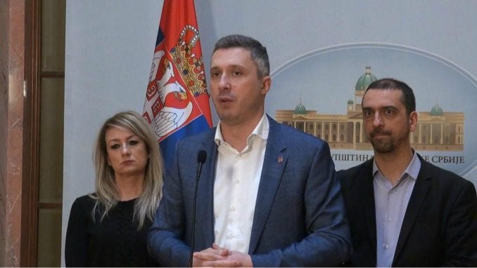 Foto: FoNet/TV FoNetLider pokreta Dveri Boško Obradović izjavio je danas da je za taj pokret neprihvatljivo to što je njihov član Srđan Nogo doneo vešala na protest „Jedan od pet miliona“ u Beogradu i dodao da će zbog toga snositi posledice pred organima stranke.