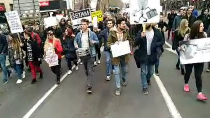 Foto: Danas OnlineGrupa od stotinjak studenata Beogradskog univerziteta krenula je nešto posle 16 časova u protestnu šetnju centralnim gradskim ulicama, izražavajući nezadovoljstvo hapšenjima njihovih kolega tokom nedavnih protesta u glavnom gradu.