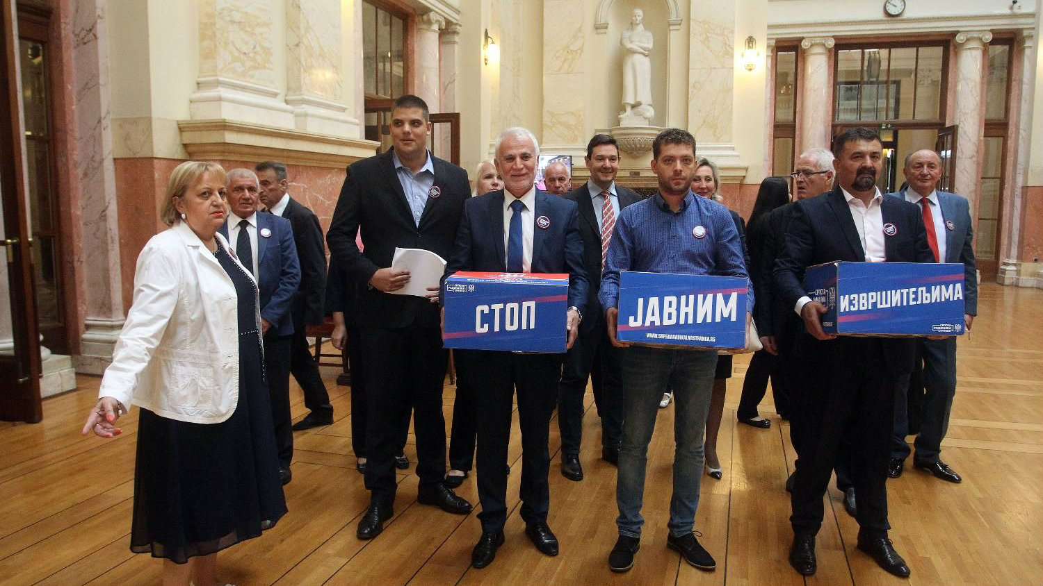 Radikali protiv izvršitelja Foto: FoNet/Aleksandar BardaPoslanici Srpske radikalne stranke (SRS) predali su danas u Skupštini Srbije novi Predlog zakona o izvršnom postupku i obezbeđenju sa više od 100.000 potpisa podrške građana za ukidanje institucije javnog izvršitelja, saopštio je na konferenciji za novinare zamenik predsednika SRS Aleksandar Šešelj.