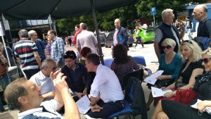 Miodrag Stanković, predsednik niške Demokratske stranke (DS) i član Predsedništva SzS, kazao je da je za to vreme sa njim, još nekim predstavnicima DS i poverenikom Pokreta slobodnih građana za Niš (PSG) Predragom Jovovićem razgovaralo oko 200 građana.