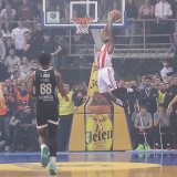Foto: Pedja Milosavljevic/Starsport.rs ©)Košarkaši Crvene zvezde pobedili su Partizan posle produžetka u finalu Kupa Radivoja Koraća, ali je senku na uspeh izabranika Janisa Sferopulosa bacilo ponašanje navijača crveno-belih koji su sa tribina niškog „Čaira“ vređali trenera Partizana Željka Obradovića.