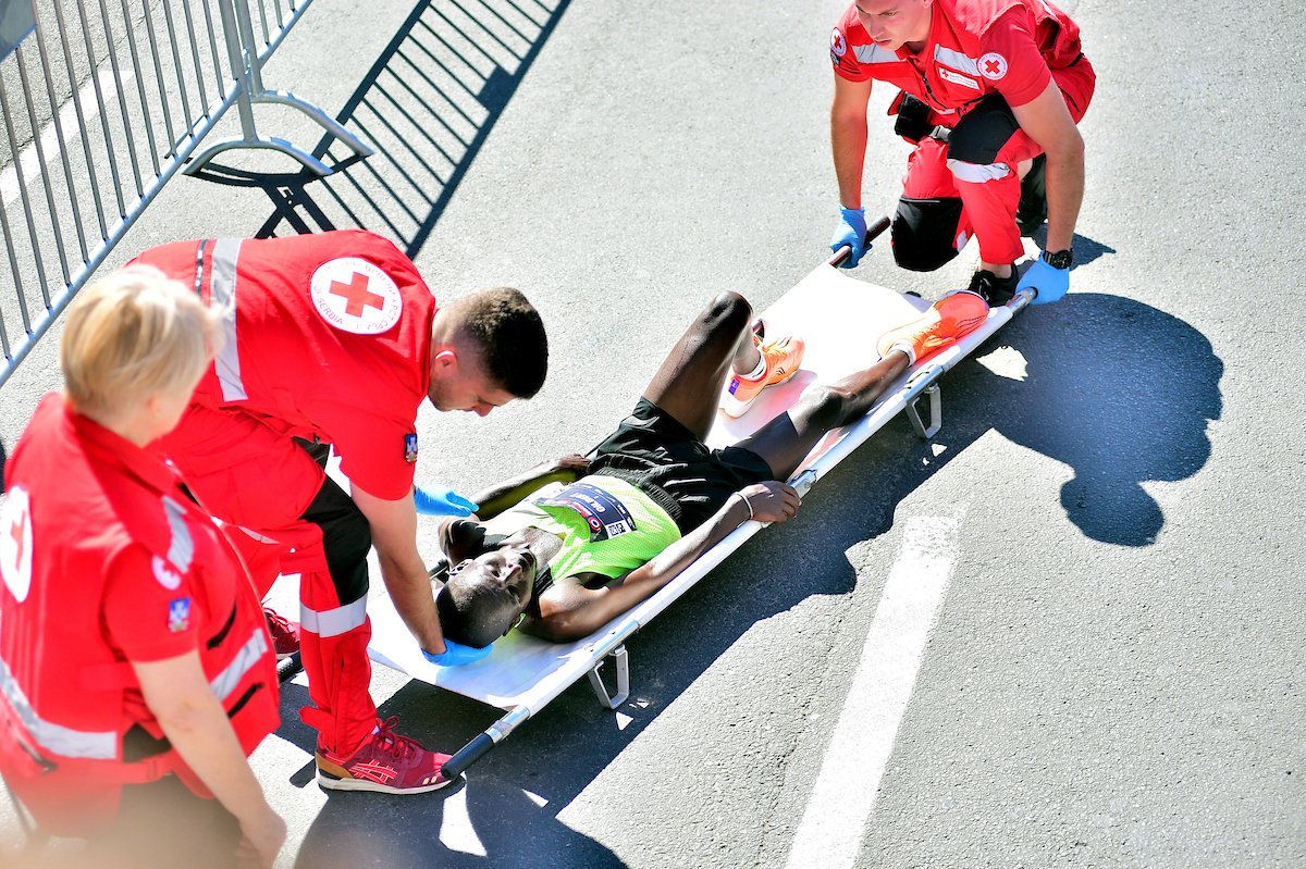 Prošavši kroz cilj, stropoštao se od iznurenosti. Lekari angažovani za maraton stavili su ga u nosila, olakšavajući mu tako da povrati snagu.