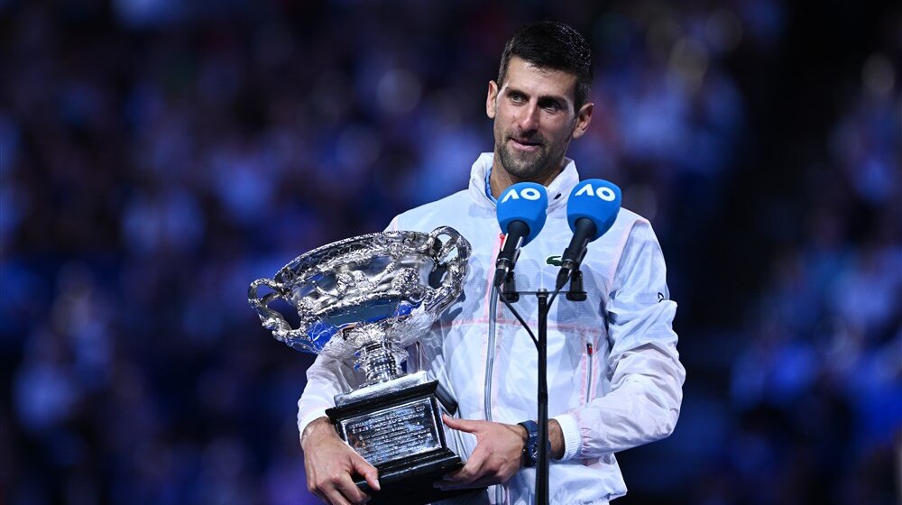 Foto: EPA-EFE/JOEL CARRETT Novak Đoković osvojio je desetu titulu na Australijan openu pobedom nad Stefanosom Cicipasom 3:0, a nakon emotivne proslave rekao je kako je ovo bila najveća pobeda u njegovom životu.