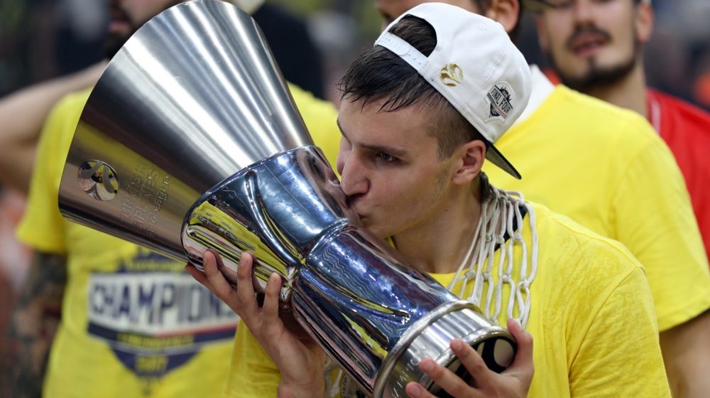 Bogdan Bogdanović sa prvim trofejem Fenerbahčea u Evroligi. Foto: EPA/TOLGA BOZOGLU