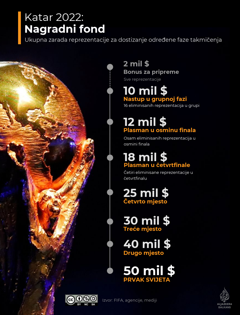 Ulazak u polufinale SP-a u Kataru vredan je 25 miliona dolara (četvrto mesto).
