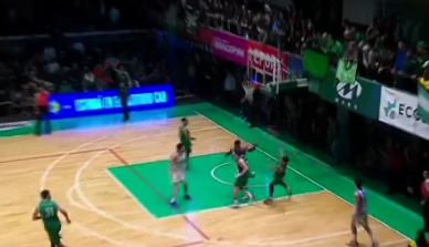 Uspeo je Emilijano Leskano da preseče dodavanje, a zatim je bacio loptu iz svog reketa i ona je uz zvuk sirene završila u košu.