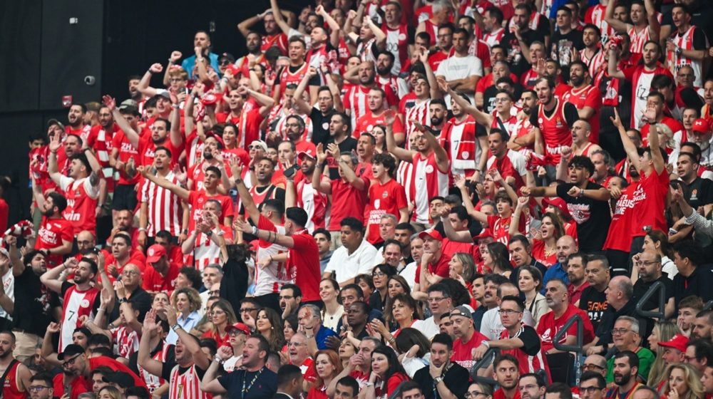 Navijači Olimpijakosa u Abu Dabiju. Foto: EPA-EFE/RYAN LIMPre meča za treće mesto na fajnal-foru Evrolige između Olimpijakosa i Panatinaikosa došlo je do sukoba navijača dva grčka kluba u dvorani.