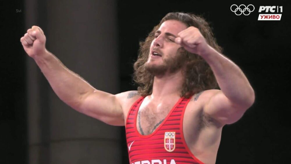 Foto: Screenshot RTSZurabi Datunašvili savladao je hrvatskog rvača Ivana Hukleka u rvanju grčko-rimskim stilom u kategoriji do 87 kilograma rezultatom 6:1 i doneo Srbiji šestu medalju sa Olimpijskih igara u Tokiju.