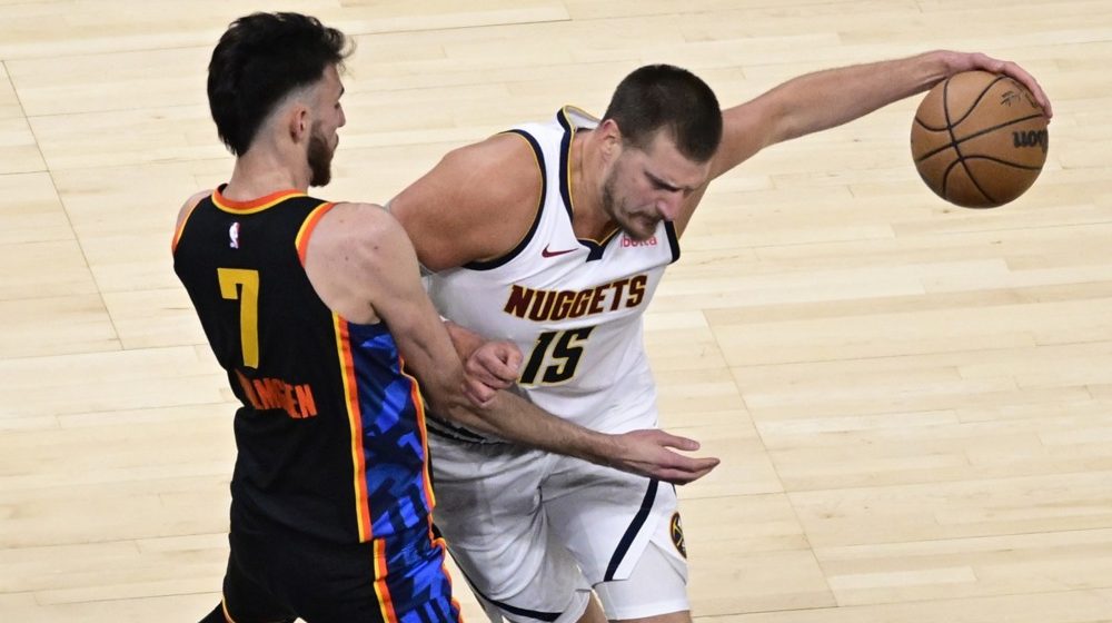 Nikola Jokić, Foto: EPA-EFE/GERALD LEONG Košarkaši Denvera poraženi su na gostovanju Oklahomi rezultatom 112:105, pa tim Nikole Jokića sada gubi sa 3:2 u polufinalnoj seriji Zapadne konferencije NBA lige.
