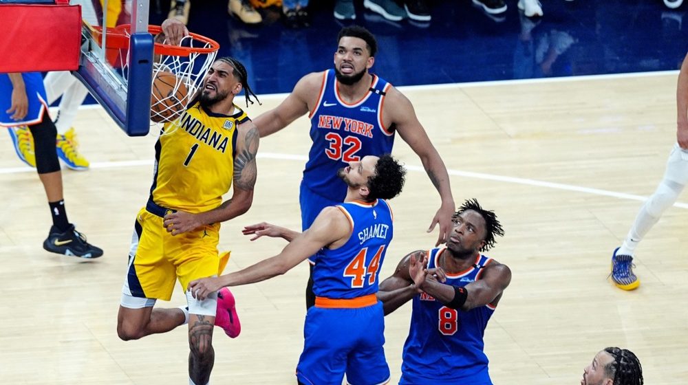Detalj sa meča Indijana -Njujork, Foto: EPA-EFE/BRIAN SPURLOCKKošarkaši Indijane pobedili su na svom parketu ekipu Njujork Niksa rezultatom 125:108 i sa ukupnih 4:2 u finalnoj seriji Istočne konferencije izborili plasman u veliko NBA finale, gde ih čeka Oklahoma.