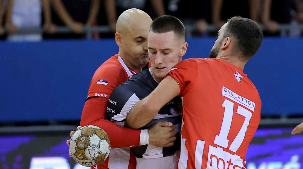 Rukometaš Partizana Nikola Zečević, Foto: Pedja Milosavljević/StarsportRukometaši Partizana su kao gosti savladali Crvenu zvezdu rezultatom 32:25 (17:10) u 13. kolu Superlige Srbije.