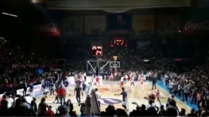 Utakmica je trebalo da počne u 19 časova, ali je početak pomeren za 58 minuta pošto je nekolicina navijača Zvezde ušla na parket prilikom zagrevanja igrača, nakon čega su košarkaši Budućnosti napustili parket.