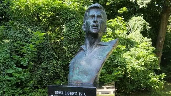 Bista Novaka Đokovića rad je vajara Bojana Mikulića iz Banja Luke, a otkriće je Aleksandar Aleks Mačeski, počasni konzul Srbije u Klivlendu, čovek koji je najzaslužniji što uopšte postoji Srpska kulturna bašta u Americi.
