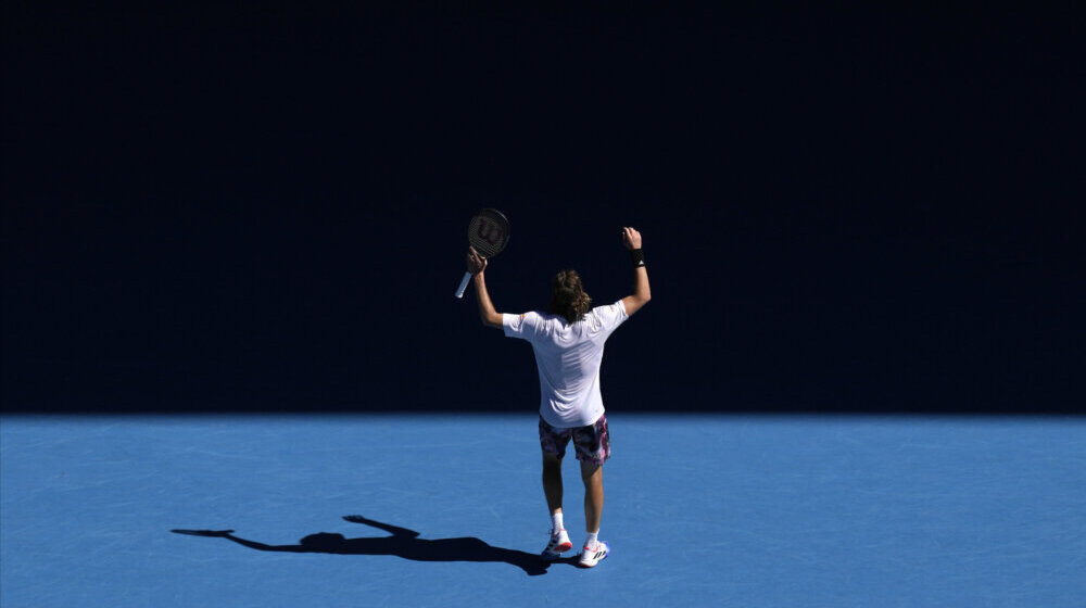 Foto: AP Photo/Ng Han GuanGrčki teniser Stefanos Cicipas plasirao se danas u finale Otvorenog prvenstva Australije u Melburnu, pošto je pobedio 20. tenisera sveta Rusa Karena Hačanova posle četiri seta, 7:6, 6:4, 6:7, 6:3.