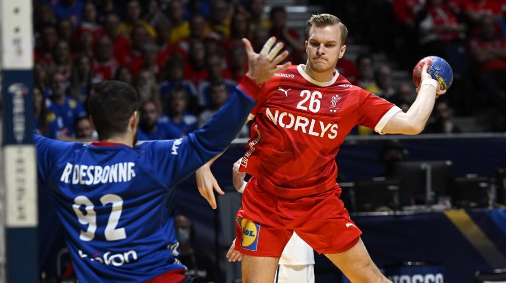 Danska je bolje otvorila meč. Mikel Hasen i drugovi su uspeli da nametnu bržu igru, a u odbrani su delovali izuzetno čvrsto i jako. Francuska se mučila da stigne do gola, a sa druge strane, Danci su imali dobra rešenja, imali su i lake golove iz tranzicije, pa su vodili tokom prvog poluvremena sa 4:1, 10:6, 12:7… ali se Francuska nije predavala, pa je na kraju prvog poluvremena, na semaforu je pisalo – 16:15 za Dansku.